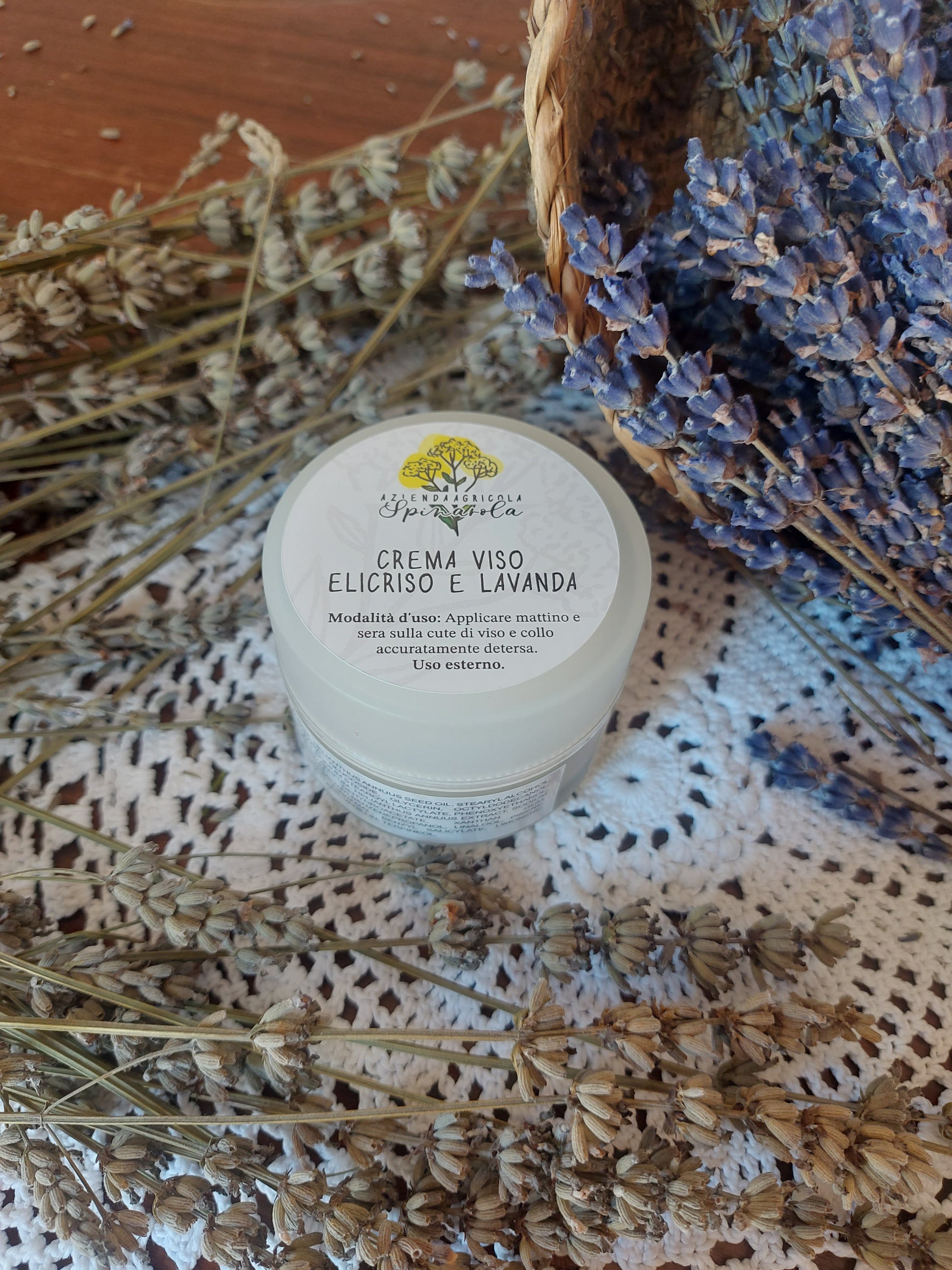 Crema viso nata dalla raccolta delle piante delle nostra terra, elicriso e lavanda.